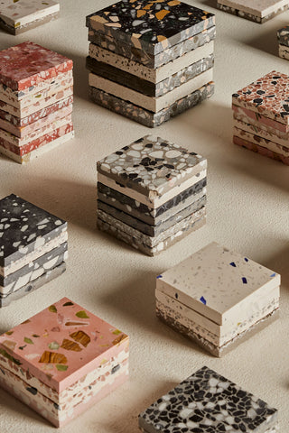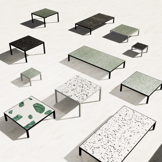 We’re happy to develop custom pieces tailored to your space and requirements. Dimensions can be adjusted, metal finishes selected, and terrazzo compositions individually defined, from subtle tones to entirely bespoke aggregate blends.